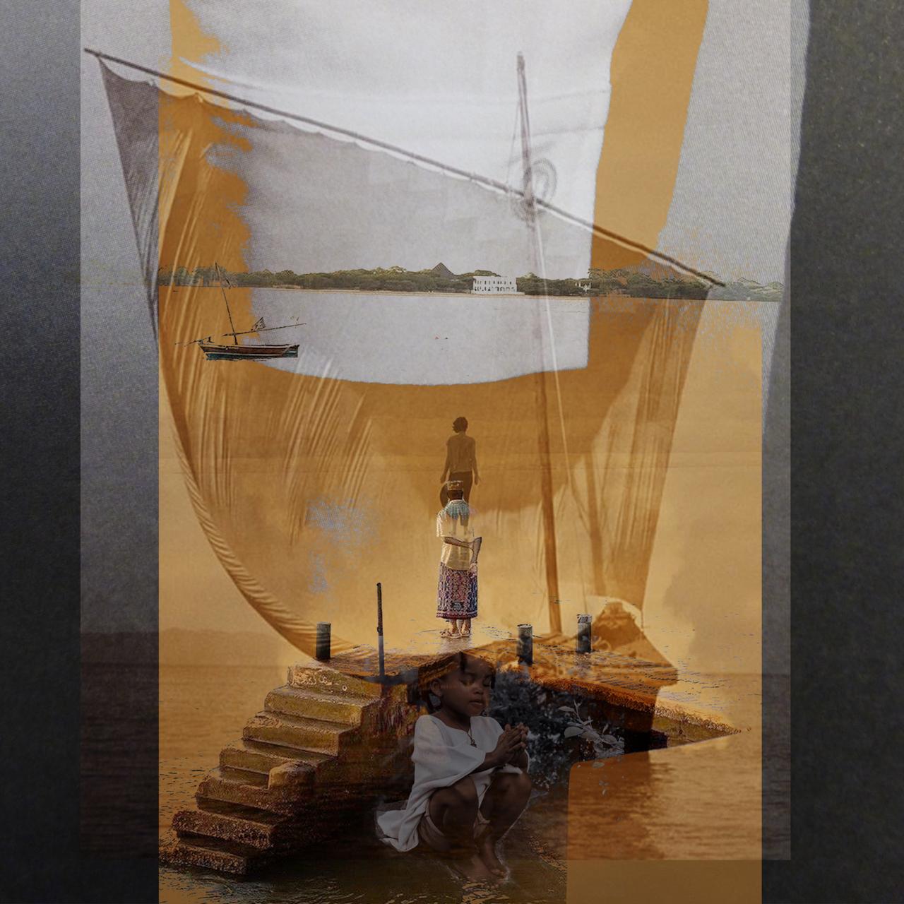 Journey into a story of tranquil waters and timeless moments with this captivating visual. A majestic sail billows against a warm, sepia-toned sky, anchoring a scene rich with depth and nostalgia. This piece weaves together elements of discovery and quiet reflection, inviting you to create your own narrative within its layered imagery. A stunning conversation starter for any space, its true beauty is in the stories you will find within.