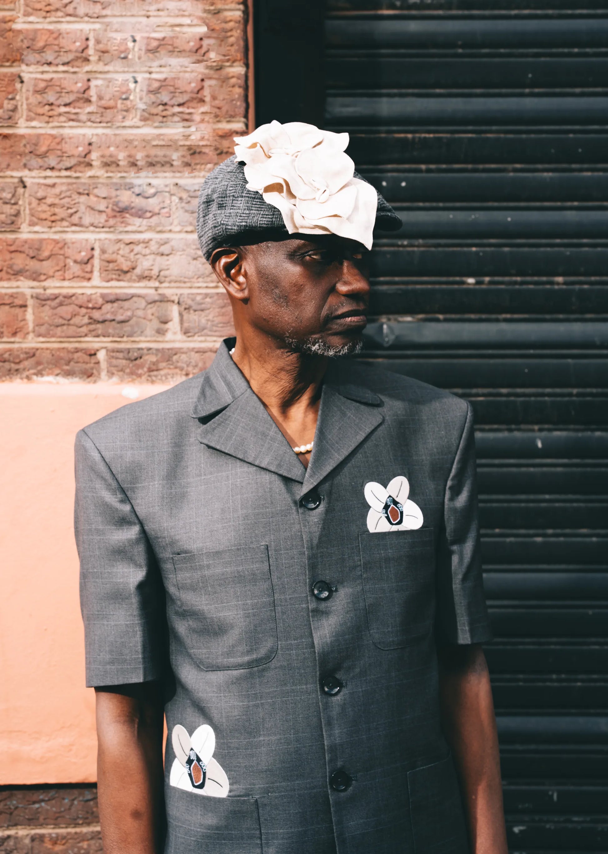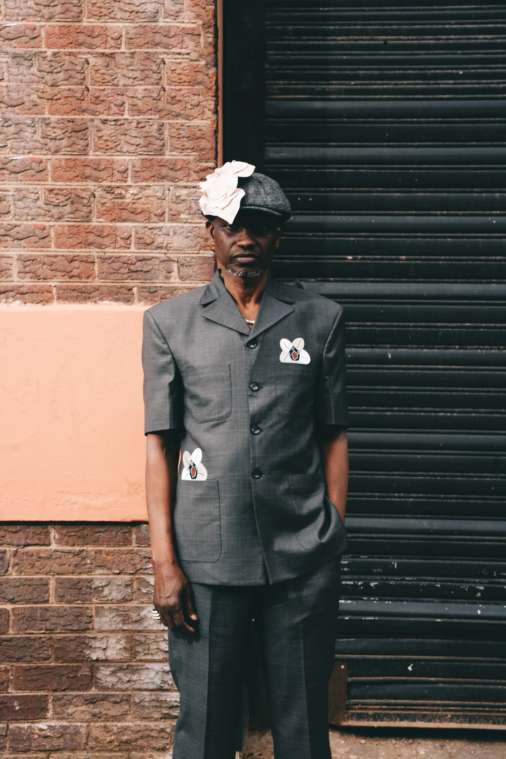 A tailored blazer and trouser set crafted from a structured wool-blend fabric. The blazer features an embroidered Albertinia Mothflower growing from the pocket, celebrating locally grown flora and quiet details. Finished with a sharp tailored pant cut for a refined, contemporary silhouette.
