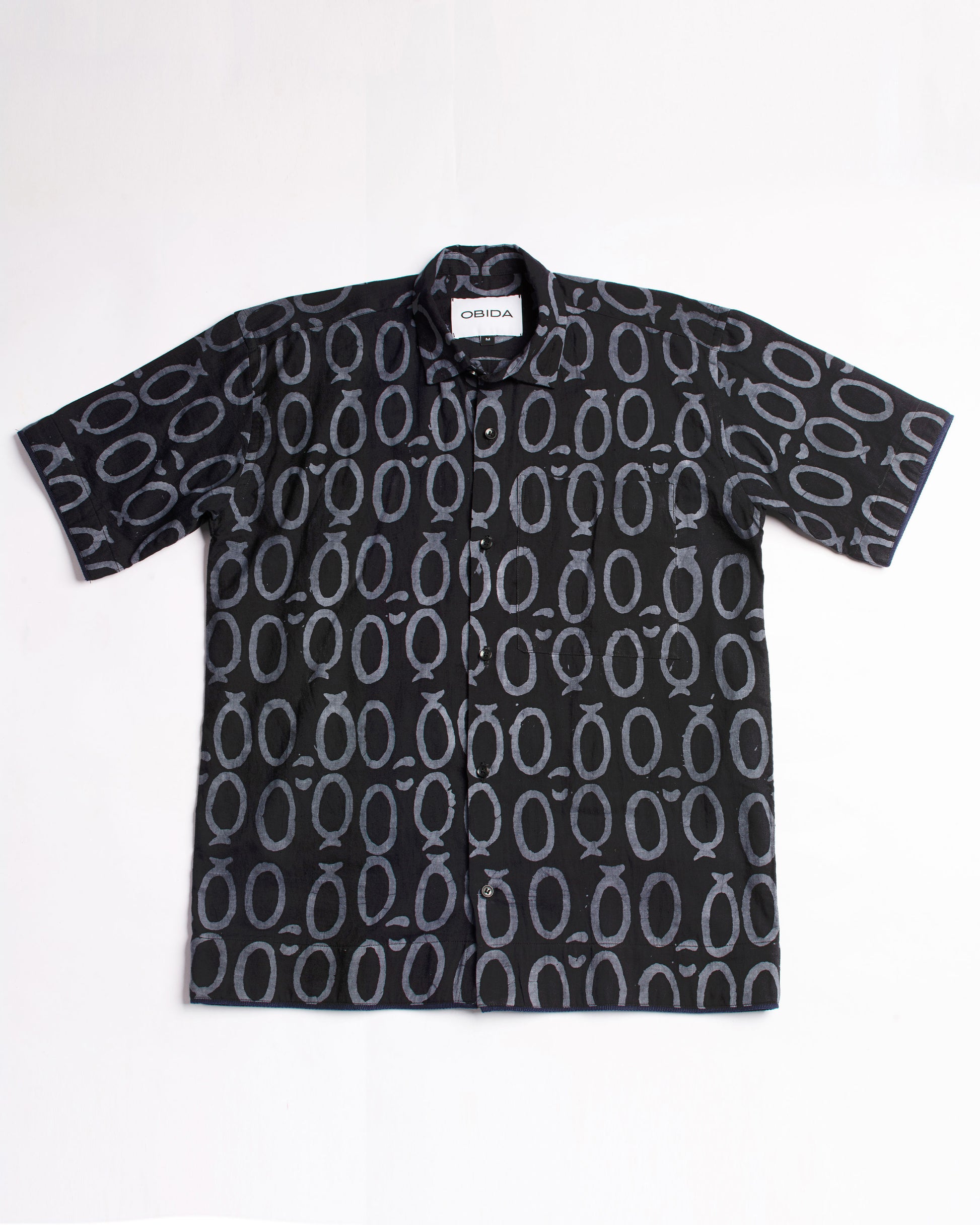 100% Funtua cotton shirt, hand-dyed with Aso-Oke accent on the reverse.