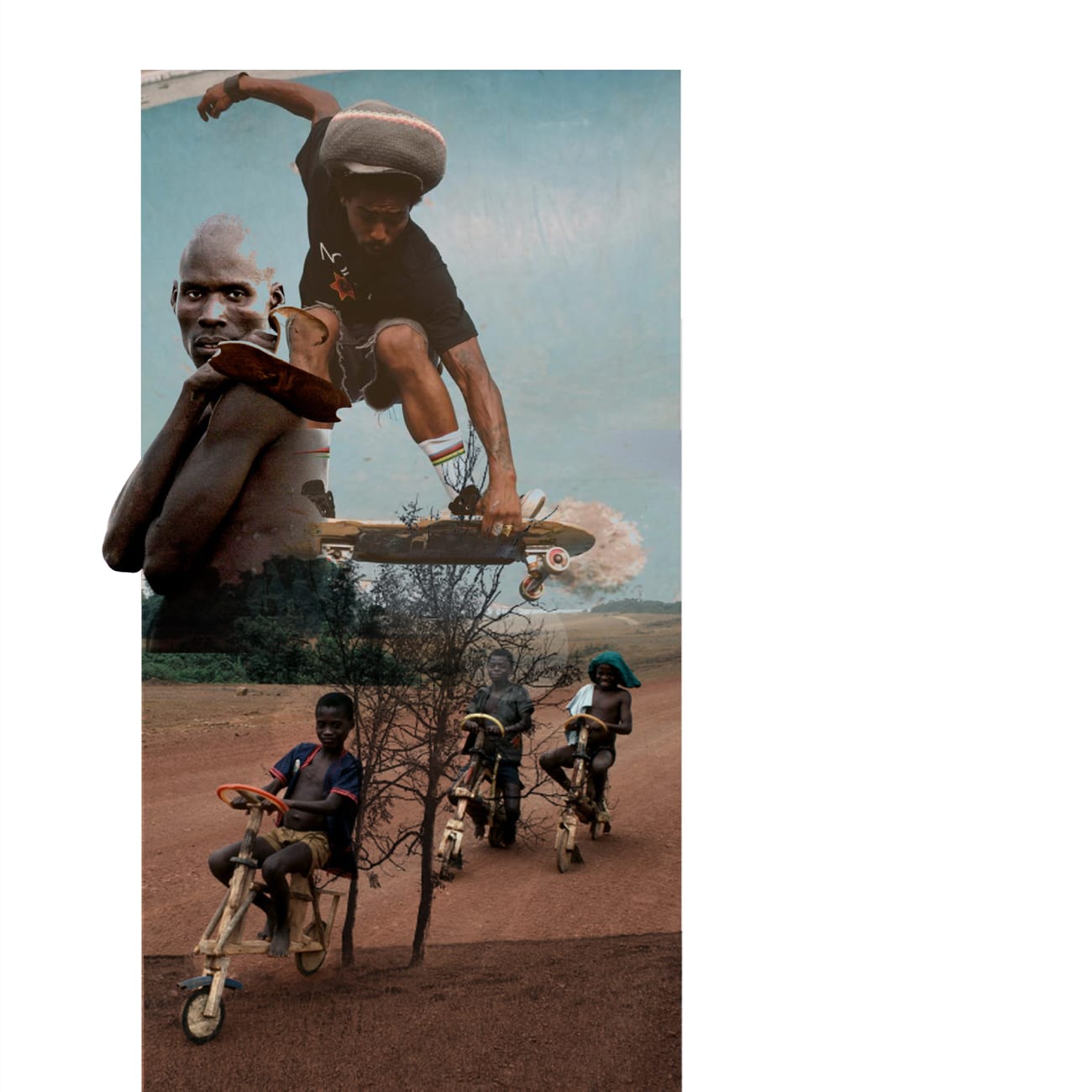 This dynamic and spirited artwork captures the thrilling energy of motion and the joy of discovery. Layered scenes of youthful pursuits blend seamlessly, from the soaring height of a skateboarder to the determined path of children on small bicycles. The piece is a beautiful celebration of freedom and forward momentum, inviting you to connect with the timeless spirit of adventure. A truly inspiring addition to any space.